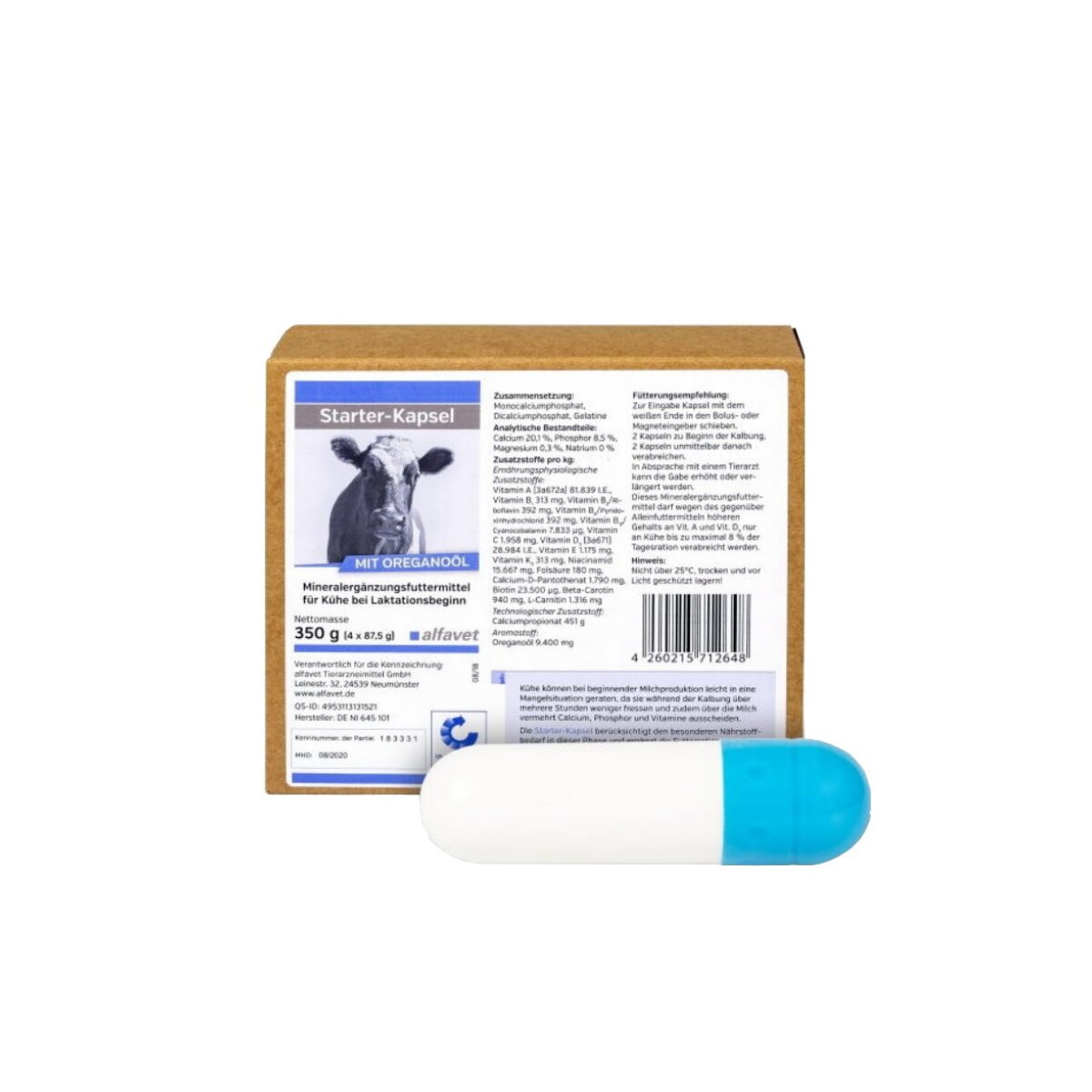 350,0 g Schachtel Alfavet Starter-Kapsel mit 4 Kapseln á 87,5 g, Mineralergänzungsfuttermittel für Kühe bei Laktationsbeginn