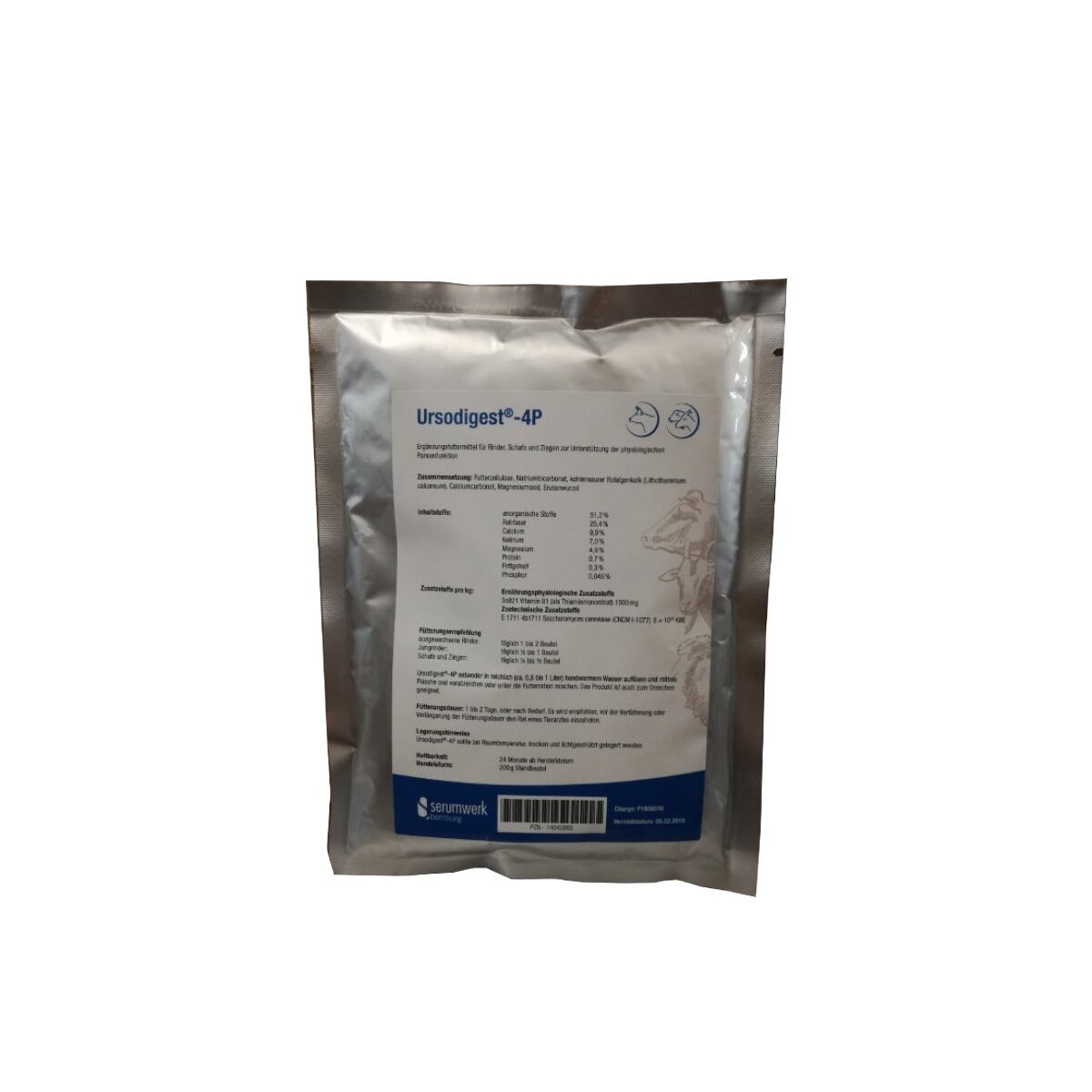 Als Neuentwicklung auf der Basis bisheriger anderer Produkte (Ursodigest) stellt es aufgrund seiner besonderen Zusammensetzung einen deutlichen Qualitätssprung im Sinne der Möglichkeiten zur Stabilisierung des Pansenmilieus dar. Durch die unterschiedliche Löslichkeit der Komponenten Natriumbicarbonat, Calciumcarbonat, Rotalgenkalk und Magnesiumoxid können Schwankungen des Pansen-pH-Wertes schnell und anhaltend ausgeglichen werden. Weitere Bestandteile von Ursodigest 4P (spezielle Lebendhefe, Vitamin B1) tragen darüber hinaus zur Unterstützung der physiologischen Verhältnisse im gesamten Magen-Darm-Trakt bei. Der natürliche Bitterstoff aus der Enzianwurzel wird traditionell bei Wiederkäuern zur Anregung des Speichelfusses eingesetzt.